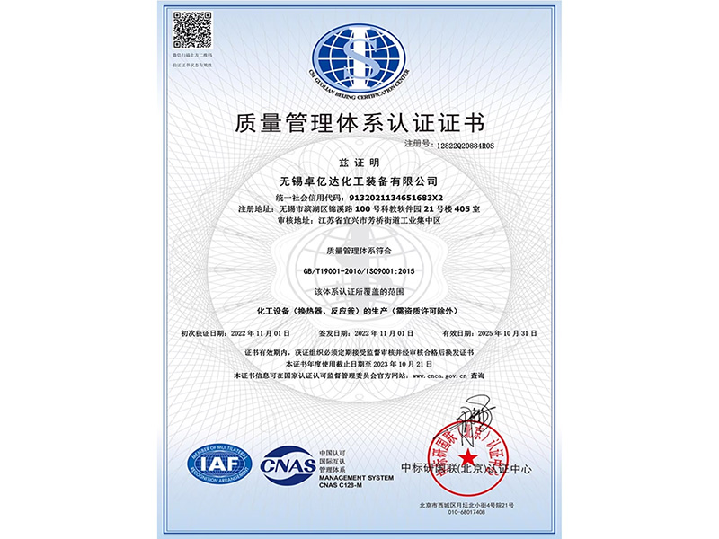 無錫卓億達化工裝備有限公司 質(zhì)量合格、誠信經(jīng)營、互惠互利、真誠相待